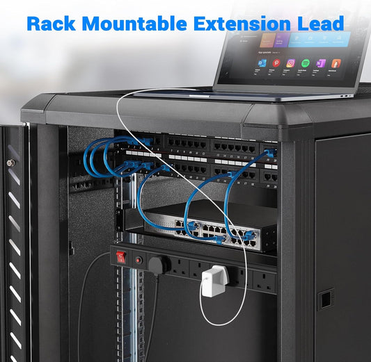 6 Way Extension Lead Surge Protection, Ohuo Rack Mount Power Strip 6 Sockets with Overload Protection Workshop Power Sockets with Switch, 2m Cable